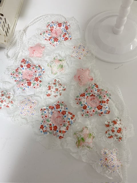 ピンクのお花の中にワタがはっててぷくぷくに製作しています◎
