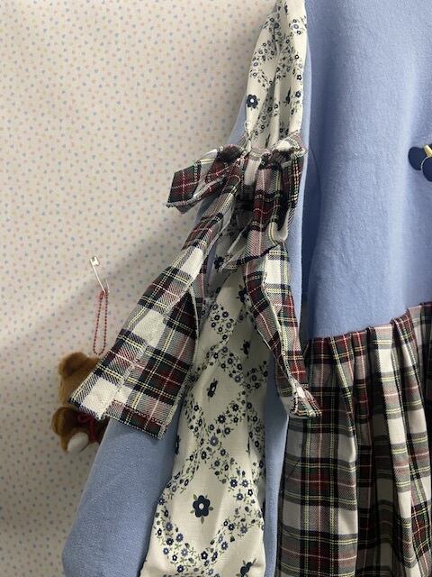 古着ならではのカントリーな人形がフロントにパッチワークされていて