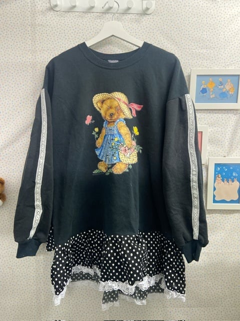 黒のボディにファンシーくまちゃんなスウェット、、もうこれだけで可愛いんですが