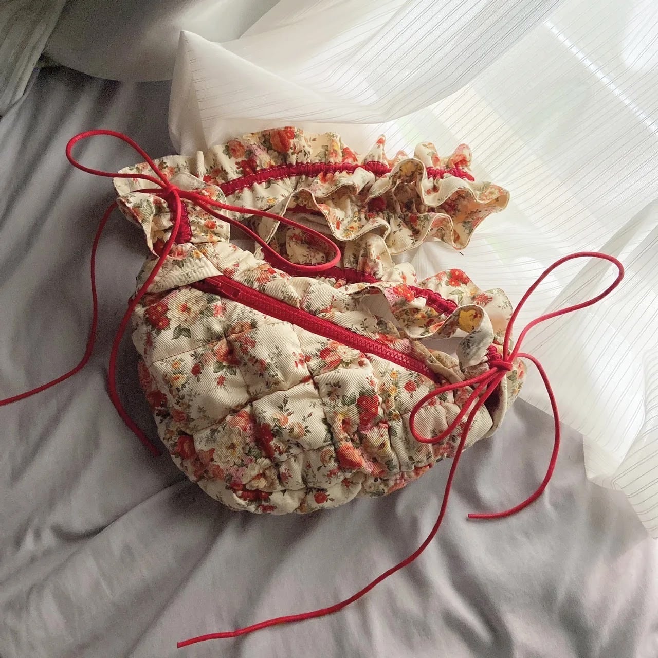 ぽこぽこしたキルティングが可愛いお花のかばんです◯